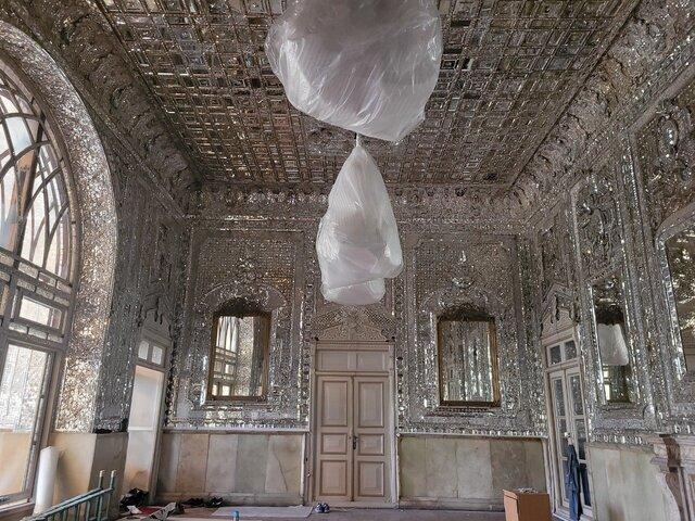 "عکسها از سمیه حسنلو، خبرنگار ایسنا ۳ ساعت مانده به غروب ۱۴ مرداد ۱۲۸۵، پرتو خورشید در تالار آیینۀ «برلیان» شکسته شده است"