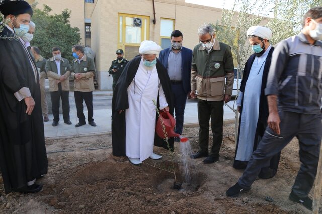 غرس نهال توسط امام جمعه یزد به مناسبت روز درختکاری