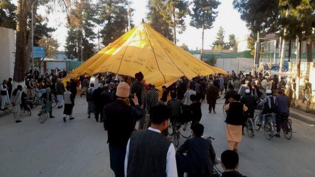 صدها نفر در ولایت فاریاب در شمال افغانستان در اعتراض به بازداشت یک فرمانده مشهور محلی طالبان که متعلق به قومیت ازبک/ازبیک است، دست به اعتراض زده و در برابر دفتر والی این ولایت در میمنه، مرکز آن خیمه تحصن برپا کردهاند.