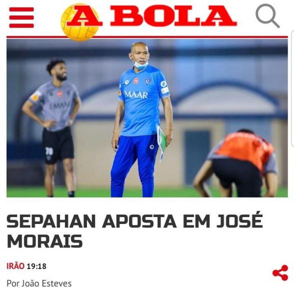 به گزارش "ورزش سه"، در حالی که شایعات پیرامون نیمکت دو تیم سپاهان و استقلال به اوج خود رسیده، روزنامه پرتغالی ABola در گزارشی به سفر ژوزه مورایس پرتغالی به اصفهان برای انجام آخرین مذاکرات و همچنین بازدید از امکانات باشگاه سپاهان پرده برداشته است.