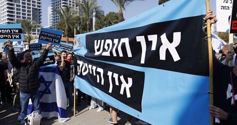 "شبکه «المیادین» به تازگی گزارش داده است که حدود ۱۱۰ هزار شهرکنشین صهیونیستی در تظاهراتی علیه کابینه نتانیاهو در خیابان «کاپلان»، مرکز تلآویو تجمع کردند"شبکه «المیادین» به تازگی گزارش داده است که حدود ۱۱۰ هزار شهرکنشین صهیونیستی در تظاهراتی علیه کابینه نتانیاهو در خیابان «کاپلان»، مرکز تلآویو تجمع کردند. آماری که از تعداد شرکتکنندگان در تظاهرات منتشر شده، نشانگر حضور بین ۱۱۰ هزار تا ۱۵۰ هزار نفر است و نشان میدهد موج مخالفتها هر هفته روند تصاعدی به خود میگیرد و این برای کابینه به شدت لرزان نتانیاهو خطرآفرین است. مقامات سابق صهیونیستی پیشتر گفته بودند که برای مقابله با کابینه نتانیاهو، تظاهرات میلیونی برگزار خواهند کرد و تلاش میکنند شهرکنشینان بیشتری را به خیابانها کشانده و نخستوزیر را از طرحهای جنجالی خود به عقبنشینی وادار کنند.