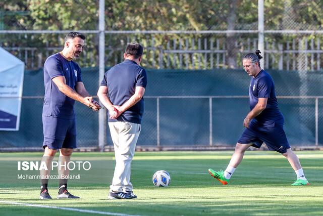 در ۱۵ دقیقه ابتدایی تمرین که برای حضور اهالی رسانه باز بود، بار دستورات تاکتیکی بر دوش تیموریان، طاهری و سایر دستیاران امیر قلعهنویی بود و سرمربی تیم ملی قدم زنان تمرین شاگردانش را تماشا میکرد.