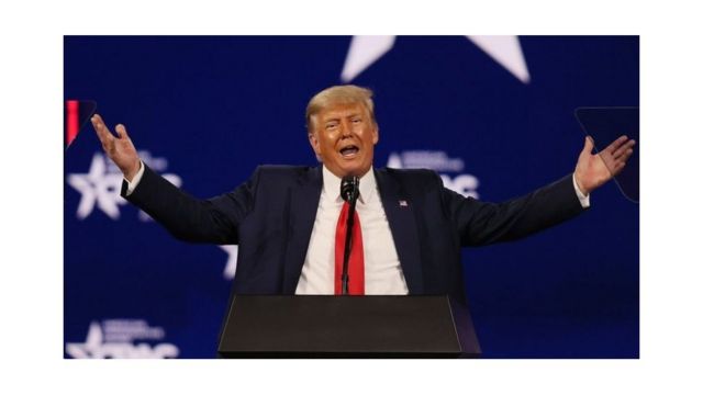 دونالد ترامپ رییس جمهوری سابق آمریکا در کنفرانس در ماه فوریه ۲۰۲۱