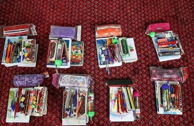 بستههای لوازم التحریر شامل خودکار، دفتر، مداد، مداد رنگی، مدادتراش، پاک کن و ... بود.