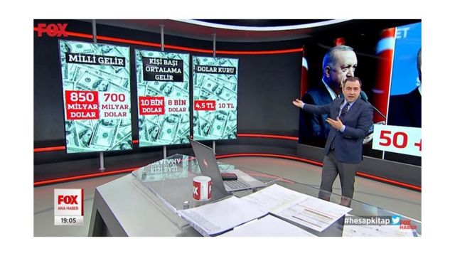 تلویزیون فاکس ترکیه که مخالف دولت است در برنامههای خبری خود عمدتا به مشکلات اقتصادی ترکیه میپردازد