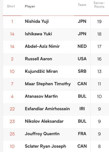 اما شاید مهم ترین ویژگی امیرحسین اسفندیار سرویسهای زهردار و فوق العاده این بازیکن محسوب میشود که چند باری در این دو هفته برای ایران گرهگشا بوده است. در همین راستا فدراسیون جهانی والیبال لیست بهترین سرویسزنهای دو هفته ابتدایی لیگ ملت ها را منتشر کرده که بر این اساس امیرحسین اسفندیار با کسب ۹ امتیاز در رده هشتم قرار گرفته است. نکته جالب حضور دو ستاره ژاپن در صدر جدول بهترین سرویسزنها است؛ جایی که یوجی نیشیدا با ۱۹ و یوکی ایشیکاوا با ۱۸ امتیاز سرویس در رده های اول و دوم قرار دارند.