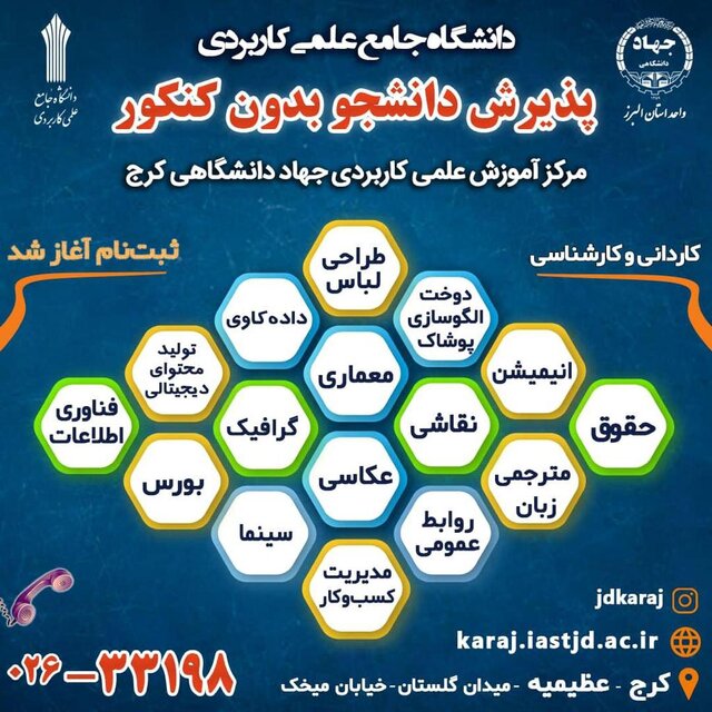 مرکز علمی-کاربردی جهاد دانشگاهی کرج بدون کنکور دانشجو میپذیرد
