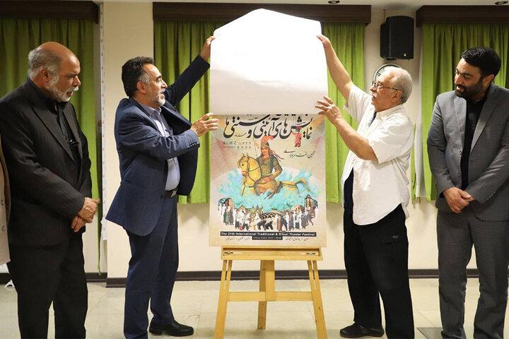 به گزارش خبرگزاری مهر، آیین رونمایی از پوستر بیست و یکمین جشنواره بینالمللی نمایشهای آیینی و سنتی و تبادل تفاهمنامه استانهای مشارکتکننده در این رویداد فرهنگی با حضور کاظم نظری مدیرکل هنرهای نمایشی، احمد جولایی دبیر جشنواره با شعار «آیین، سنت، سرمایه ملی» روز یکشنبه ۵ شهریور ۱۴۰۲ در سالن کنفرانس معاونت هنری برگزار شد.
