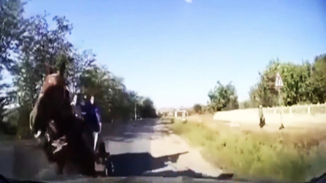 تصادف خودرو با اسب رم کرده در خیابان + فیلم
