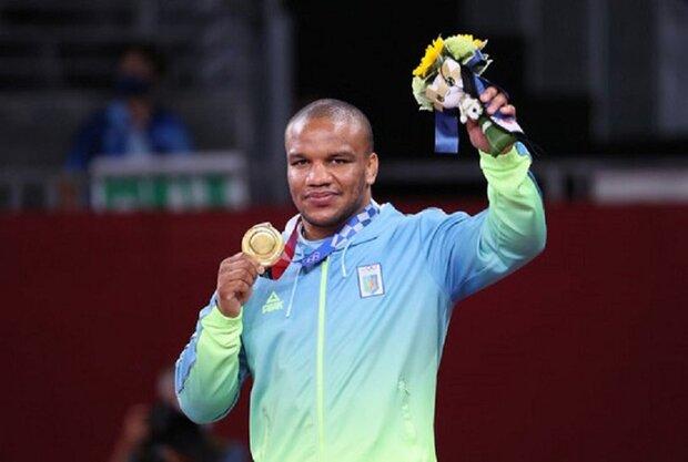 شادی خوان دیئگو گارسیا لوپز از مکزیک پس از پیروزی مقابل پوررهنما و کسب مدال طلای پارالمپیک توکیو.