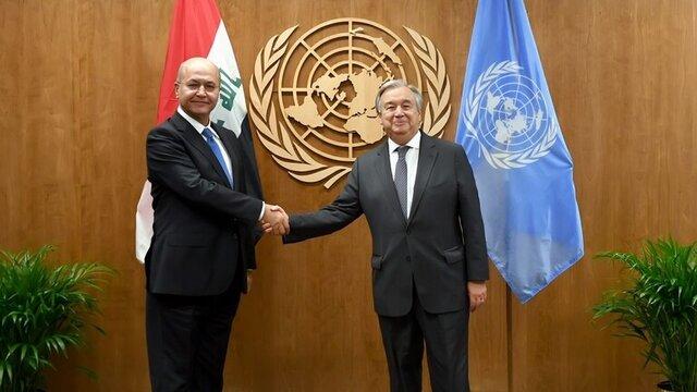 رایزنی رئیس جمهور عراق با دبیرکل سازمان ملل درباره انتخابات پیش رو