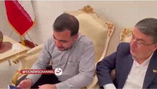 او در کنار سفیر ایران درحالی تلفن همراه خود را روی اسپیکر زده و با معاون روابط عمومی اش در تهران صحبت می کنند. از رپورتاژی می گویند که برای بخش خبری ۲۰:۳۰ فرستاده شده است و از کیفیت خوب تماس صوتی و وزیر می گوید این تماس که با پیام رسان بله گرفته شده و یا تماس قبلی که با روبیکا انجام شده بود نشان از کیفیت خوب تماس صوتی در پیام رسان های داخلی دارد.