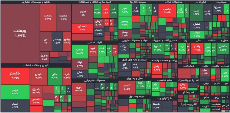 ۳ نماد با بیشترین خروج پول حقیقی: وبملت، وتجارت، وبصادر.نقشه بازار امروز ۲۹