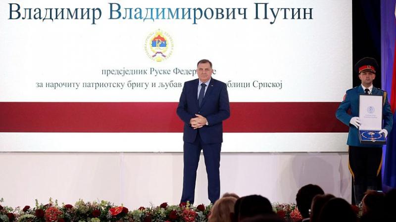 میلوراد دودیک به مناسبت «روز جمهوری صربسکا» که دادگاه قانون اساسی بوسنی ماهیت آنرا غیرقانونی تشخیص میدهد اقدام به اعطای مدال به ولادیمیر پوتین کرد.