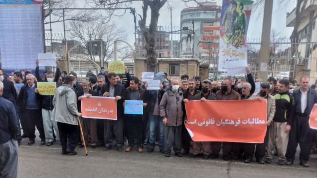 تجمع فرهنگیان در مریوان در اعتراض به بازداشت یک معلم فعال صنفی