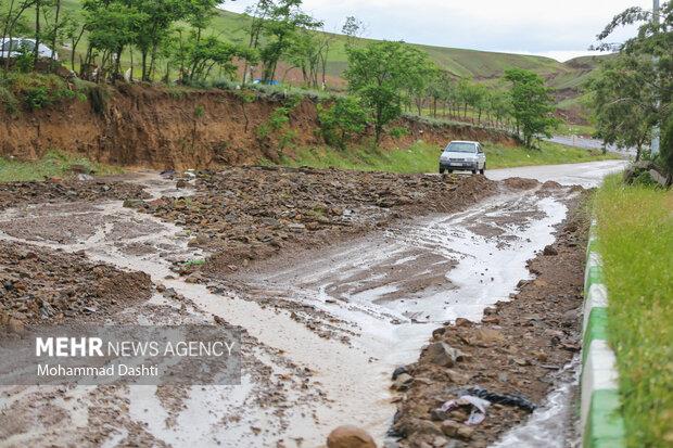 سیلابی شدن رودخانههای روستاهای کاشان بر اثر بارش رگبار