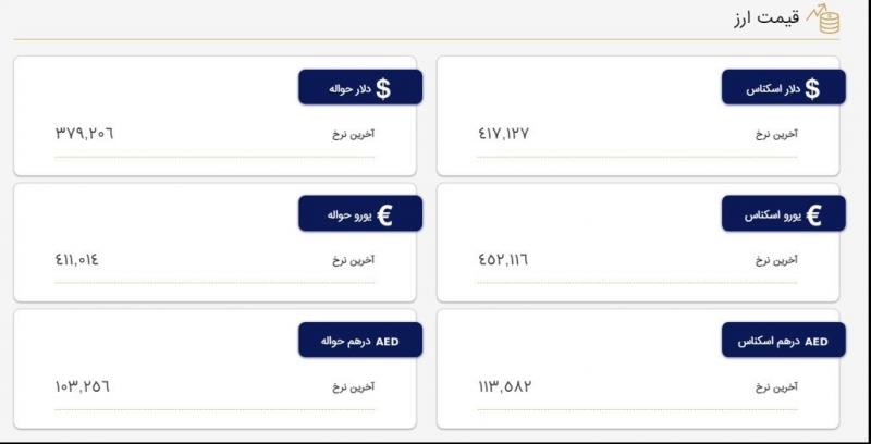 این در حالی است که قیمت هر اسکناس یورو نیز در مرکز مبادله ایران ۴۵۲۱۱ تومان و نرخ حواله یورو نیز ۴۱۱۰۱ تومان است. از سوی دیگر، اسکناس درهم امارات ۱۱۳۵۸ تومان ارزش گذاری شده است و نرخ حواله درهم نیز ۱۰۳۲۵ تومان است.