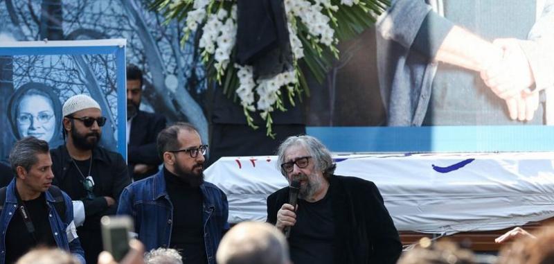 مرضیه برومند در مراسم تشییع پیکر داریوش مهرجویی