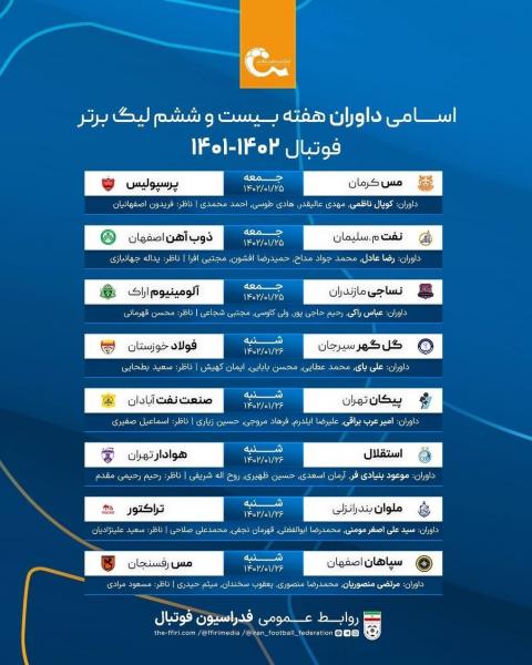 داوران هفته ۲۶ لیگ: گزینههای دربی در آبنمک