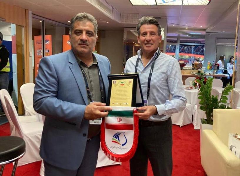 در پایان این دیدار از طرف رییس فدراسیون ایران لوح و پرچم یادبود فدراسیون دوومیدانی جمهوری اسلامی ایران به سباستین کو اهداء شد.
