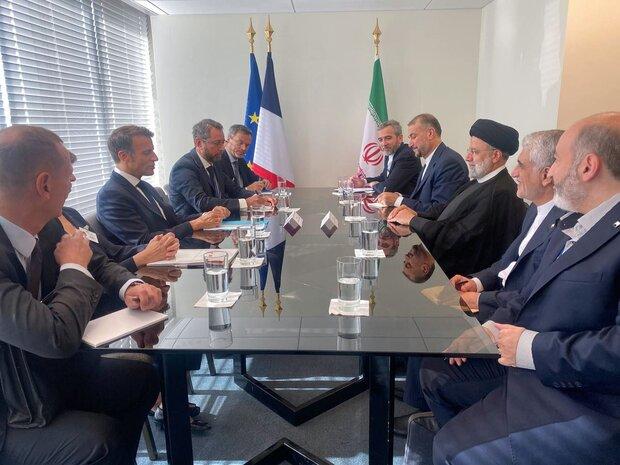 رئیسی در این دیدار با تأکید بر اینکه ایران آماده دستیابی به یک توافق عادلانه و پایدار است، لازمه حصول این توافق را تضمینهای اطمینانبخش و بسته شدن پروندههای پادمانی ایران خواند و گفت: سطح همکاریها و روابط ایران و فرانسه قابل ارتقاء است، ضمن اینکه اروپا باید در عمل نشان دهد که سیاستهای آن مستقل است و تابع خواست و سیاست آمریکا نیست.