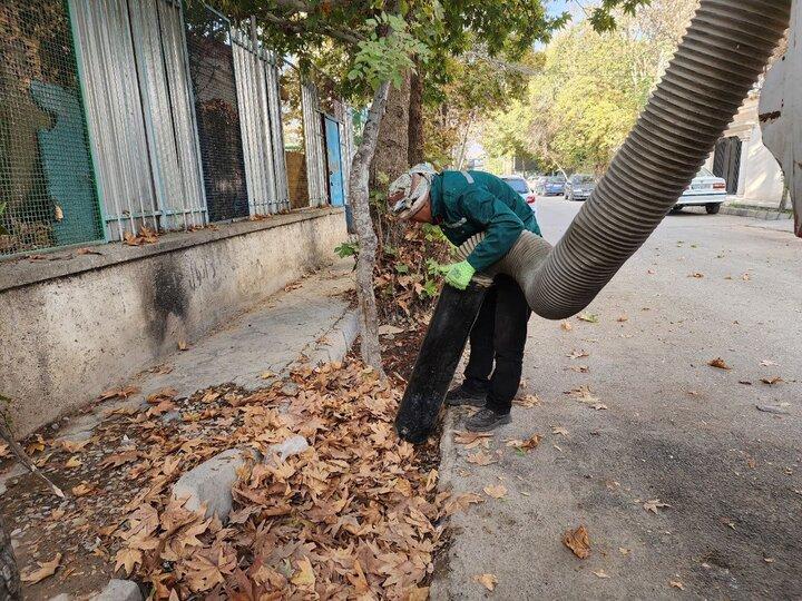 جمع آوری مکانیزه برگهای پاییزی در شهر بجنورد