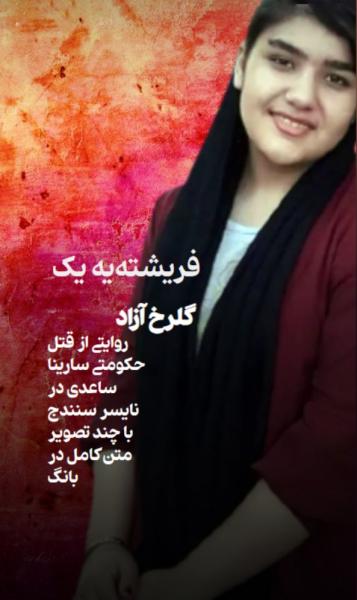 سارینا ساعدی، دختر ۱۵ ساله سنندجی بود که در ۴ آبان ۱۴۰۱، در محله نایسر سنندج و در جریان قیام ملت ایران بر اثر شدت ضربات متعدد باتوم به سرش توسط نیروهای حکومتی، دچار خونریزی مغزی شده و یک روز پس از بستری شدن، در ۵ آبان در بیمارستان توحید سنندج درگذشت. داستانی که میخوانید هم داستان ساریناست و هم داستان هر دختر ۱۵ سالهای که در نایسر سنندج زندگی میکند.