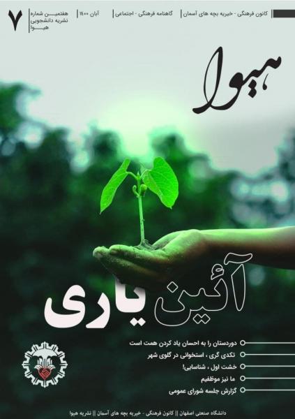 به همت کانون فرهنگی خیریه بچه های آسمان دانشگاه صنعتی اصفهان شماره هفتم گاهنامه فرهنگی و اجتماعی « هیوا» منتشر شد.