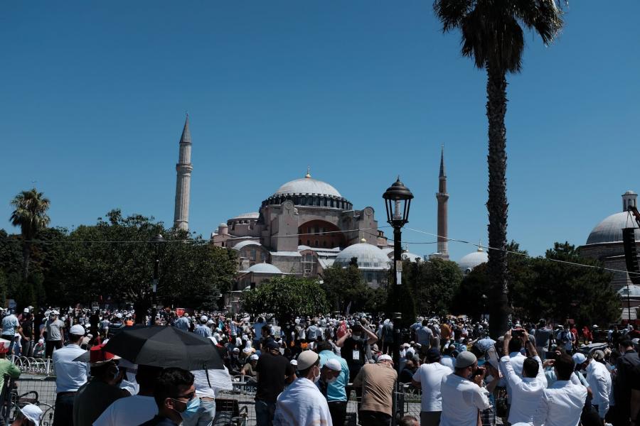 "خبرگزاری میزان – در پی تبدیل مجدد «ایاصوفیه» به مسجد، نخستین نماز جمعه در این مکان تاریخی ترکیه، روز جمعه، سوم مرداد، پس از ۸۶ سال برگزار شد"