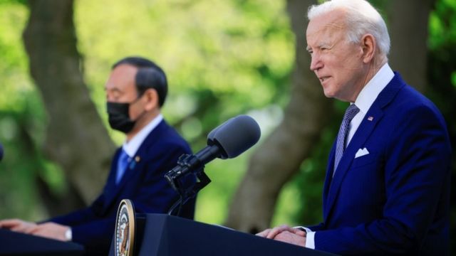 جو بایدن و یوشیهیده سوگا، نخست وزیر ژاپن
