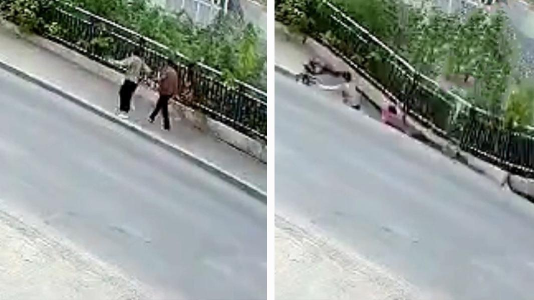 خالی شدن ناگهانی زمین زیر پای دو عابر پیاده + فیلم