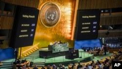 مجمع عمومی سازمان ملل متحد با اکثریت قاطع، قطعنامه غیرالزامآوری را به تصویب رساند که طی آن خواستار آتشبس فوری بشردوستانه در غزه است.
