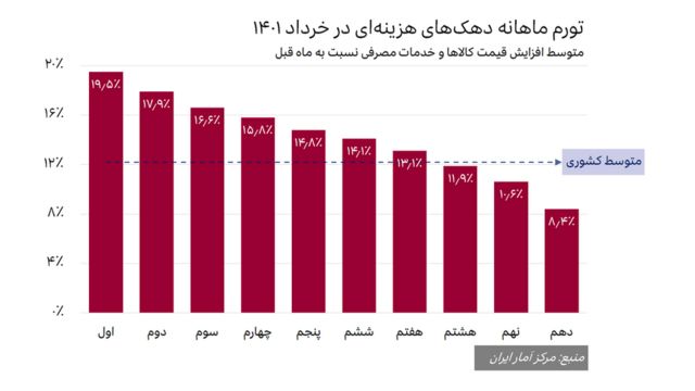 تورم خرداد ۱۴۰۱ ایران برای کمدرآمدترین دهک بیش از دو برابر پردرآمدترین دهک بود