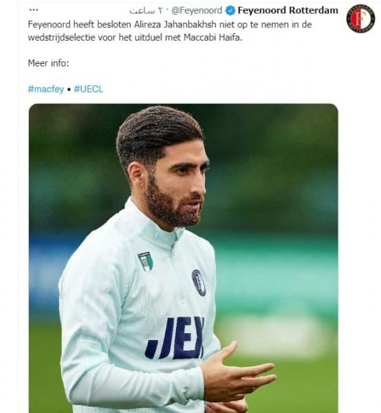 تیم فوتبال فاینورد سهشنبه شب هفته آینده(بیست و سوم شهریورماه) در یکی از مسابقات هفته اول فصل جدید لیگ کنفرانس اروپا باید در زمین نماینده رژیم صهیونیستی به میدان برود که علیرضا جهانبخش در این مسابقه تیمش را همراهی نمیکند.