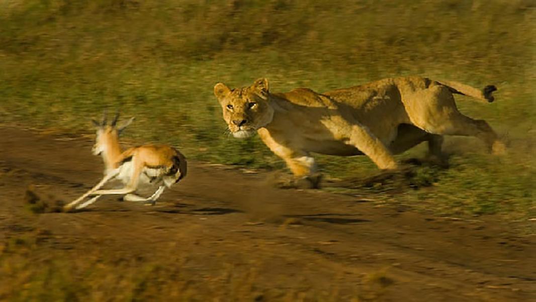 یک آهو در کمال ناباوری موفق به فرار از حمله برق آسای شیر شد.