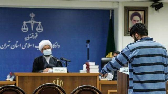 قرار بود جلسه دادگاه دو روز بعد برگزار شود که برگزار نشد تا اینکه دو هفته بعد قوه قضاییه اعلام کرد: «فردی که یک مرکز دولتی را به آتش کشیده بود، به اتهام اخلال در نظم و آسایش عمومی، اجتماع و تبانی برای ارتکاب جرم بر ضد امنیت ملی، محاربه و افساد فیالارض، محاربه از طریق به آتش کشیدن (تحریق و تخریب عمدی)، به مجازات اعدام محکوم شد.»