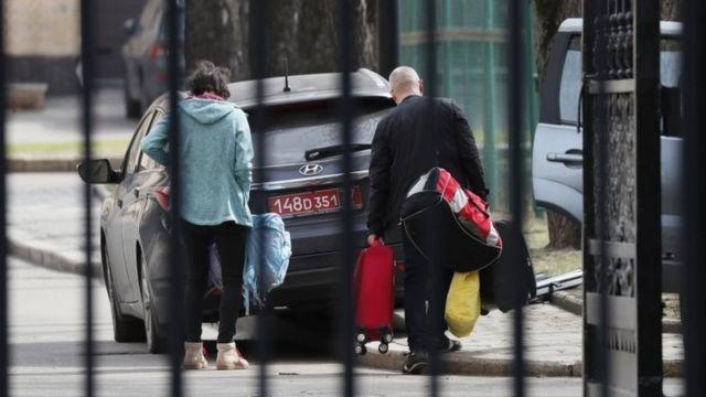 دیپلماتهای جمهوری چک در حال خروج از سفارت این کشور در مسکو