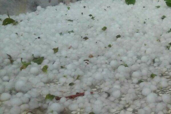 بارش تگرگ و خسارت به خودروها در جاده روانسر به جوانرود