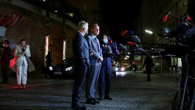 مهدی صفری معاون اقتصادی وزارت خارجه و علی باقری کنی معاون سیاسی و مذاکره کننده ارشد اتمی ایران (به ترتیب نفر اول و دوم از راست) برای اولین بار در مذاکرات مربوط به احیای برجام شرکت کرده اند