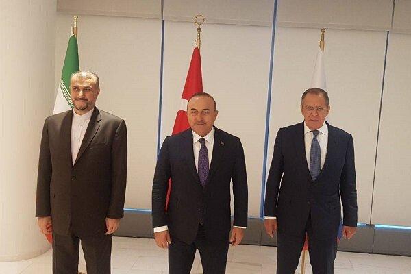 در این نشست که با حضور وزیران خارجه جمهوری اسلامی ایران، روسیه و ترکیه و پترسون نماینده ویژه دبیرکل سازمان ملل در امور سوریه برگزار گردید، آخرین تحولات و ابتکارات سیاسی و بشردوستانه در سوریه بررسی شد.