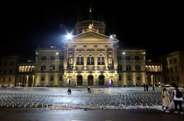 روشن کردن شمع به یاد قربانیان شیوع کرونا در شهر برن در سوئیس