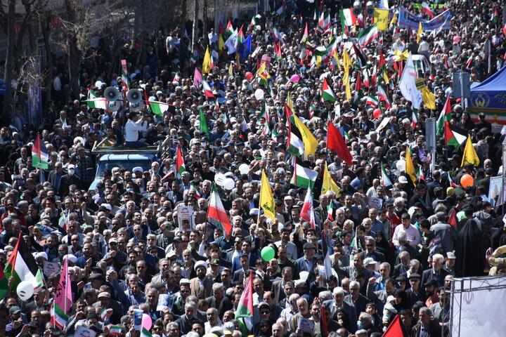 وی افزود: راهپیمایان روز قدس دو پیام داشتند. پیام اول هشدار جدی به رژیم صهیونیستی بود که جایگاهی در بین مردم جهان ندارد و پیام دوم برای جبهه مقاومت بویژه مردم مظلوم فلسطین و غزه بود که تنها نخواهند ماند.