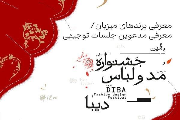 اسامی مدعوین چهارمین جشنواره ملی مد و لباس دیبا به شرح زیر است: فاطمه مستانه، پریچهر حقیقی، زهرا متقی، عسل میکانیک، مائده حاجی هاشمی، هاجر (آوا) حیدری، فرنوش پل حاج کاظمی، طیبه شریعت فر، سارا فتحی فریمانی، رکسانا زینالی کاهی، زهرا بختیاری، آزاده هاشمی، آرزو کرمانشاهی، مریم قاسمی نیا، محمد حسین فیضی، سیده راضیه امیریان، یلدا خلیلی، زهرا عفتی نصرابادی، سپیده پوراسترابادی، زهرا ینج، الهه ینج، بهناز مهدی ابادی، زهرا شعبانی، فاطمه منتظری، زهرا گلشنی منفرد، صدیقه فضل هاشمی، زهرا حیدری، ندا آزادیان، بهاره الوند، سعیده اصغری، زهره حسینی، دلارام جعفرآقائیان، نرگس بهلولی، متین حمله داری، لیلا چمی، آناهیتا احمدپور، الناز علی عسگری، فاطمه آقاخانی، سارا احمدی، فاطمه جمالی، نرگس ملازاده سورکی، معصومه شفیع زاده، میترا همتی مرزی، ملیکا براتی، فاطمه باقری، زهرا جعفرزاده، مینو زند اقطاعی، عارفه پسند، امیر خلیل ارجمندی، نسیم یعقوبی، عبداله رحمانی، الناز روشنی، ندا باباگلی، کوثر عبیات، نگین امینی، مریم سیاه منصوری، شمیمه زاهدی، فرخنده آتش باز، نرگس سائلی، فرگل حقیقی، پریا قنبری، فاطمه شکیبائی یگانه و محمد رضا ضیایی پور