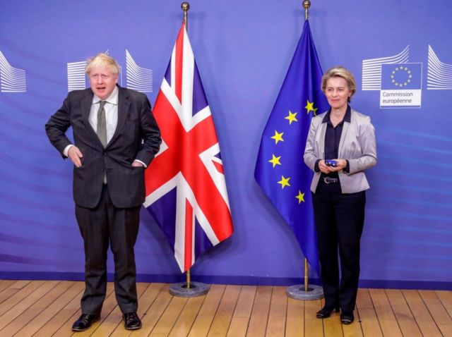 مذاکرات در مورد توافق تجاری ادامه دارد اما به دنبال گفتگوهای روز چهارشنبه بین آقای جانسون و خانم فون درلاین، دفتر نخستوزیر بریتانیا گفت که "شکافهای بسیار بزرگی هنوز باقی مانده است".