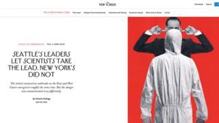 مقامهای سیاتل از همان لحظه اول مردم را تشویق به ماندن در خانه و عمل کردن به توصیههای علمی کردند. اما در نیویورک، با وجود برخورداری از سیستم بهداشتی که به آن میبالند، مقامها خیلی آهسته گام برداشتند و پیامهای آنها برای مردم واضح و شفاف نبود. (بر عکس سیاتل) اغلب هم این سیاسیون بودند که صدایشان شنیده میشد."