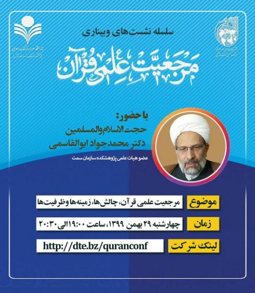 به گزارش خبرنگار مهر، سلسله نشستهای وبیناری مرجعیت علمی قرآن؛ چالشها، زمینهها و ظرفیتها به همت پژوهشکده فرهنگ و معارف قرآن پژوهشگاه علوم و فرهنگ اسلامی و میز توسعه و تعمیق فرهنگ قرآنی دفتر تبلیغات اسلامی حوزه علمیه قم با حضور اساتید علوم قرآنی برگزار میشود.