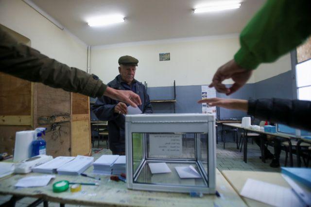 مردی در الجزیره، پایتخت الجزایر رای خود را به صندوق میاندازد. انتظار میرود حزب حاکم، جبهه آزادیبخش میهنی، یک بار دیگر پیروز انتخابات شود. با این حال، مردم الجزایر به علت افزایش قیمت ارزاق و اجناس، و همچنین بحران در بخش مسکن و بهداشت ناراضی و نگرانند.