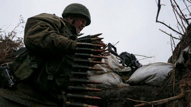 یک شورشی مورد حمایت روسیه در یک موضع رزمی در فرونز در منطقه لوهانسک اوکراین