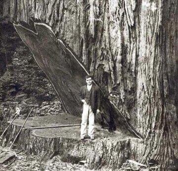 قطع درخت سکویا ۲۶۰۰ ساله غول پیکر در دهه ۱۸۹۰ نشان دهنده از دست دادن غم انگیز میراث طبیعی و یادآور تأثیرات زیست محیطی ناشی از فعالیتهای انسانی است.