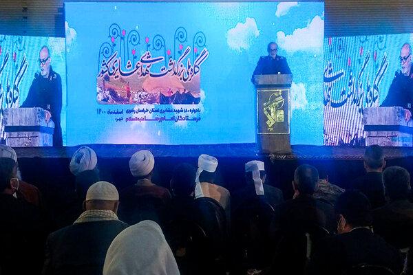 به گزارش خبرنگار مهر؛ کنگره ملی بزرگداشت شهدای عشایری کشور، یادواره ۱۸۰ شهید عشایری خراسان رضوی با عنوان «فرستادگان امام رضا (ع)» پیش از ظهر سهشنبه با حضور فرمانده سپاه امام رضا (ع)، ائمه جمعه، مدیران مدارس علوم دینی و روحانیون تسنن و تشیع، جمعی از عشایر خراسان رضوی و مدیران استانی حوزه عشایر، فرماندار و مدیران دستگاههای امنیتی، انتظامی، نظامی و اجرایی شهرستان خواف برگزار شد.
